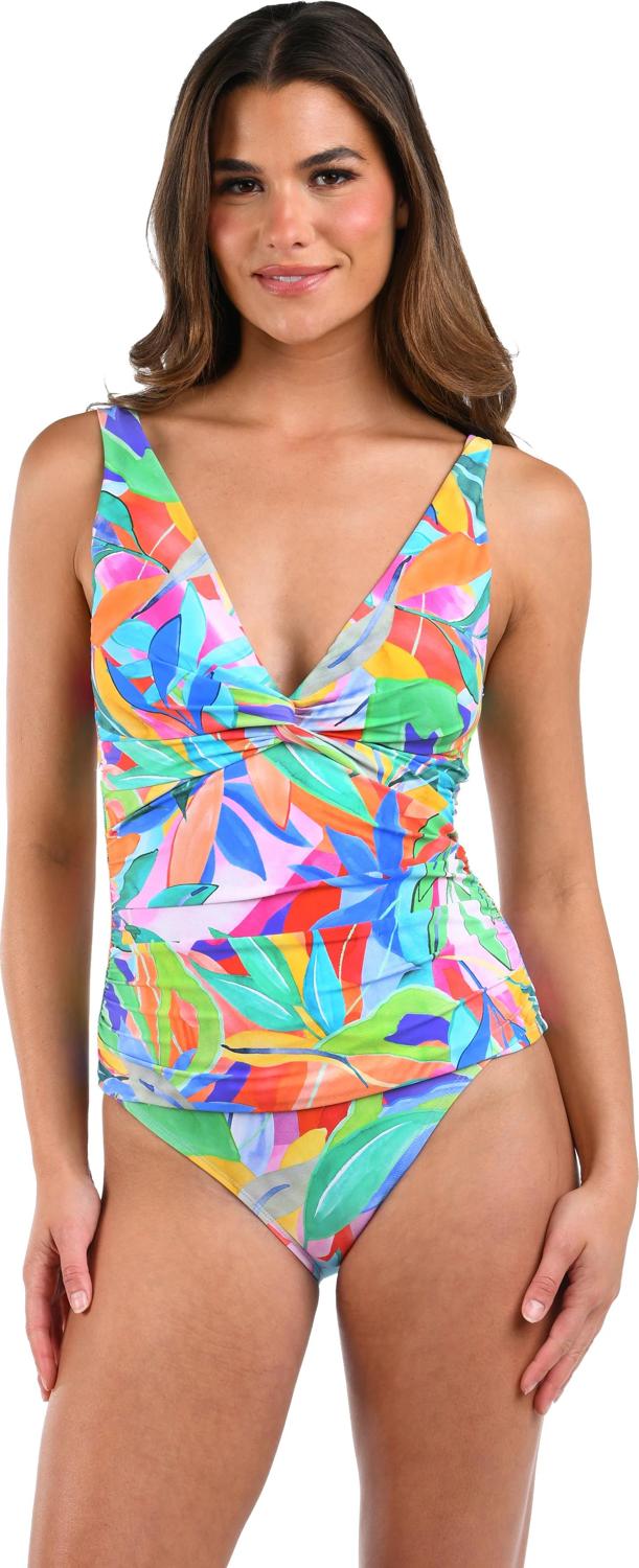 La Blanca - Womens Tropi-Flage Off-The-Shoulder Twist Front Tankini Top