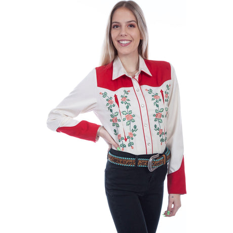 Scully - Womens Red Yokes W/Emb Roses Shirt