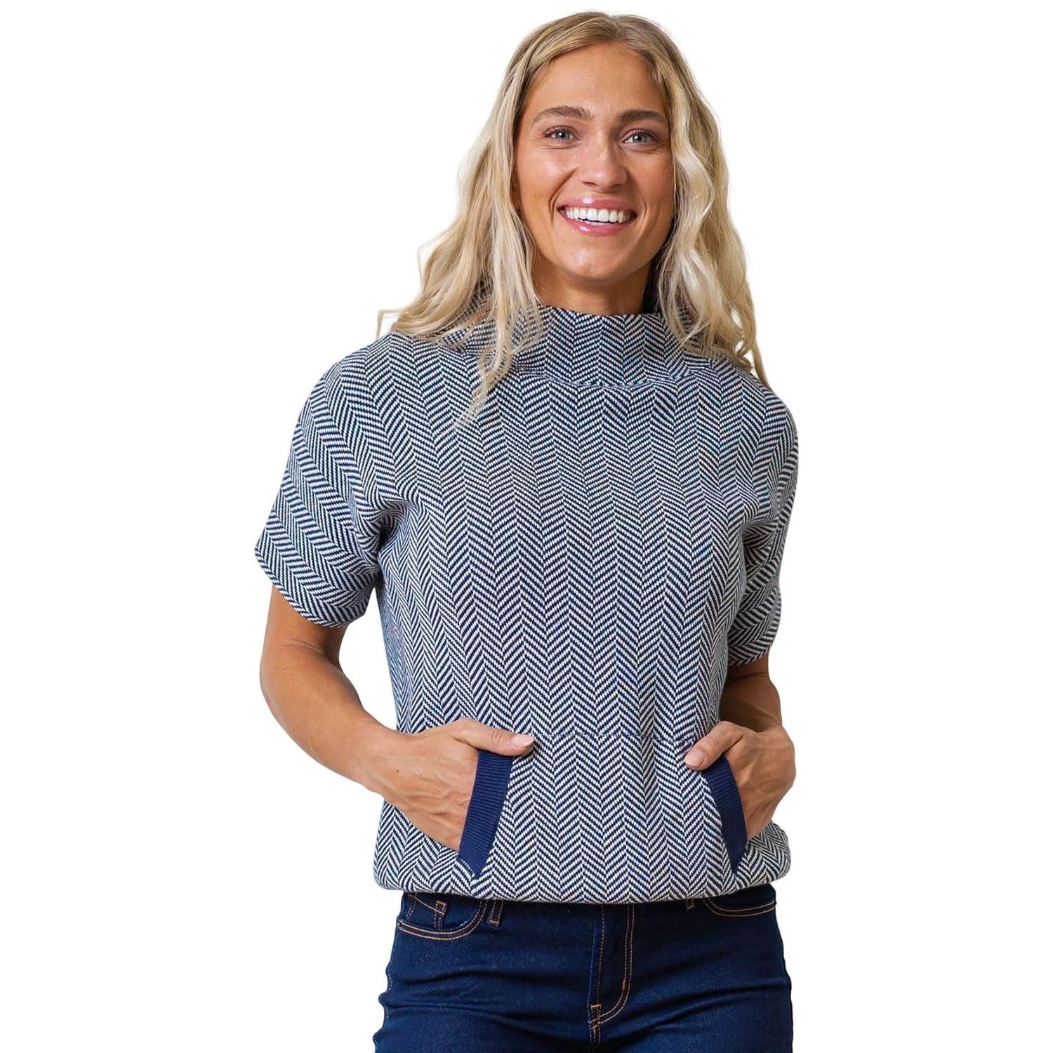 Hope & Henry - Womens Mock Neck Short Sleeve Sweater