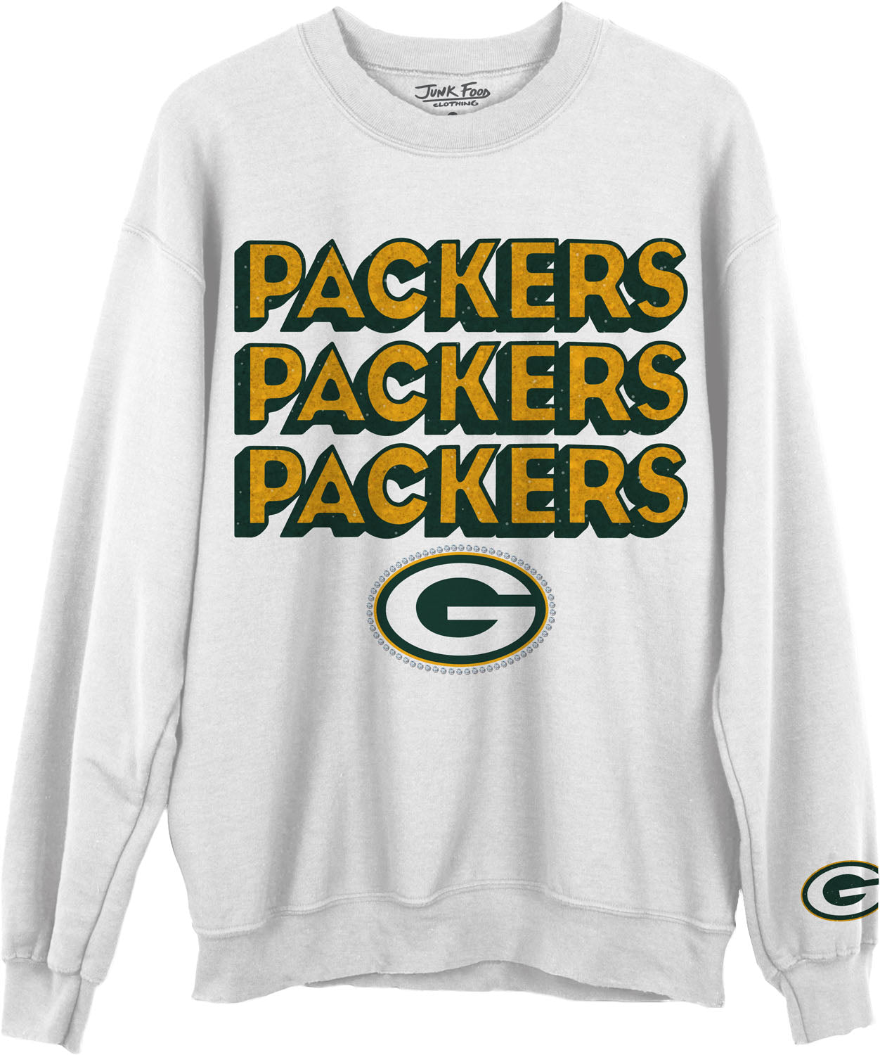 Junk Food - Unisex Packers Repeat Bling Crew Neck Fleece Sweatshirt