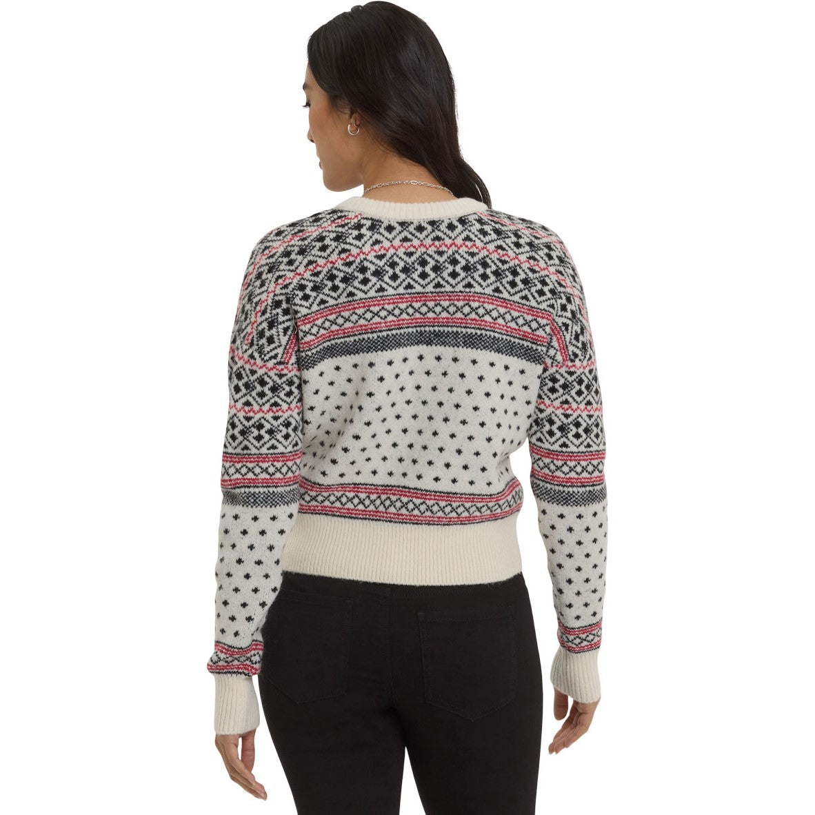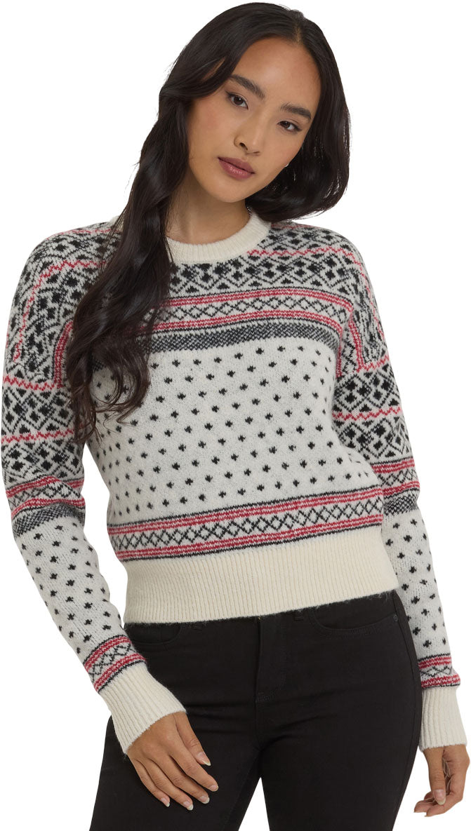 Giving cozy ski lodge vibes, the Fairisle Pullover Sweater by NYDJ has a classic fairisle pattern and ribbing at the neck, cuffs and hem. It's soft, comfortable and perfect to pair with your jeans, corduroys and denim skirts through the fall and holiday seasons.