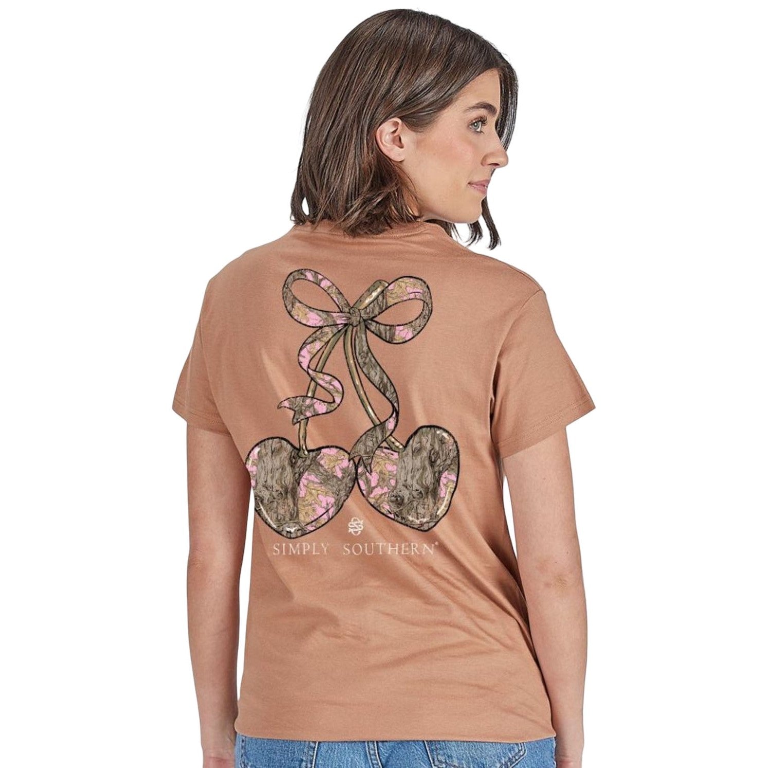 Simply Southern - Womens Pink Camo Cherry Short Sleeve T-Shirt