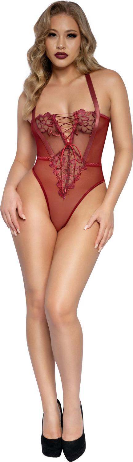 Dreamgirl - Womens Stretch Floral Lace Lace-Up Teddy