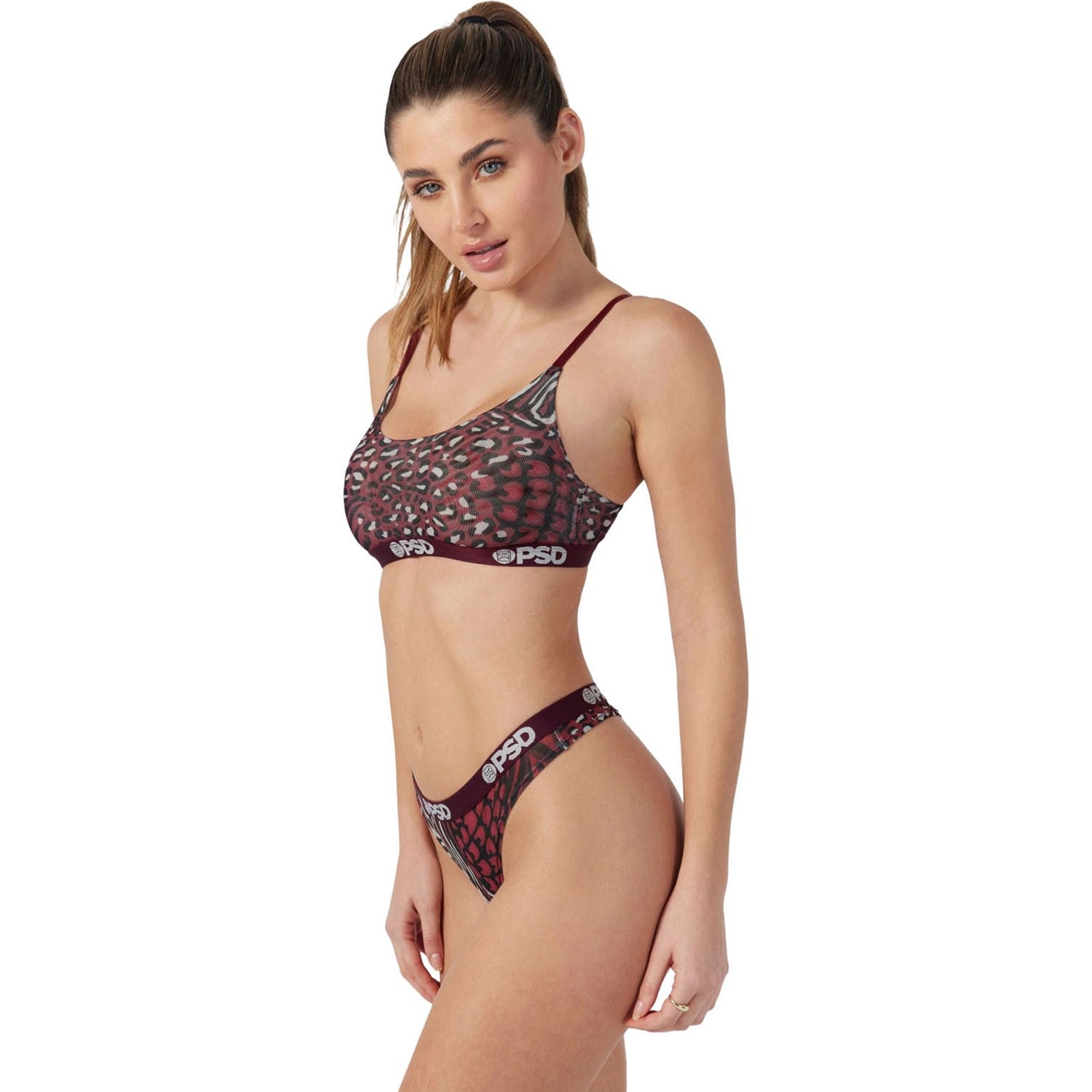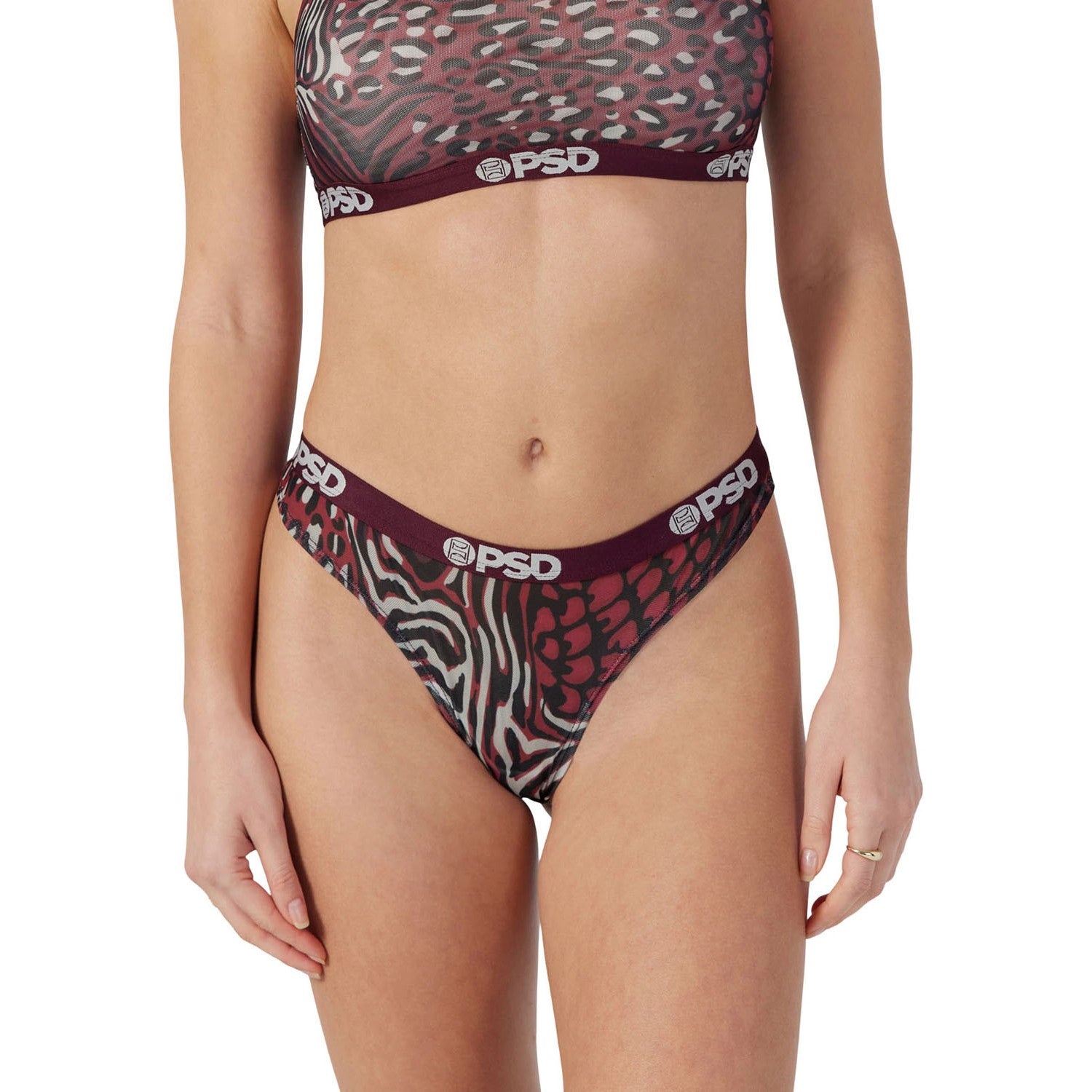 Psd Underwear - Womens Cheetah Mix Mesh Th Thong