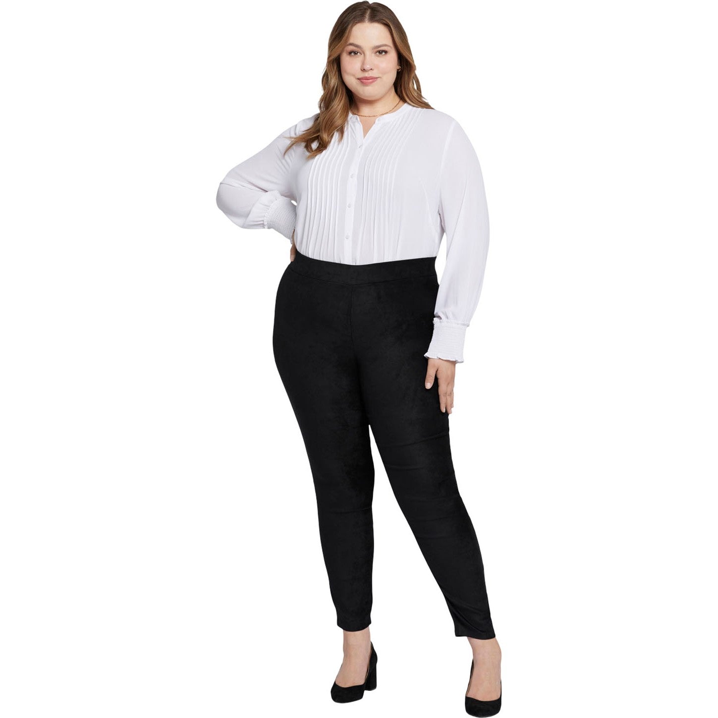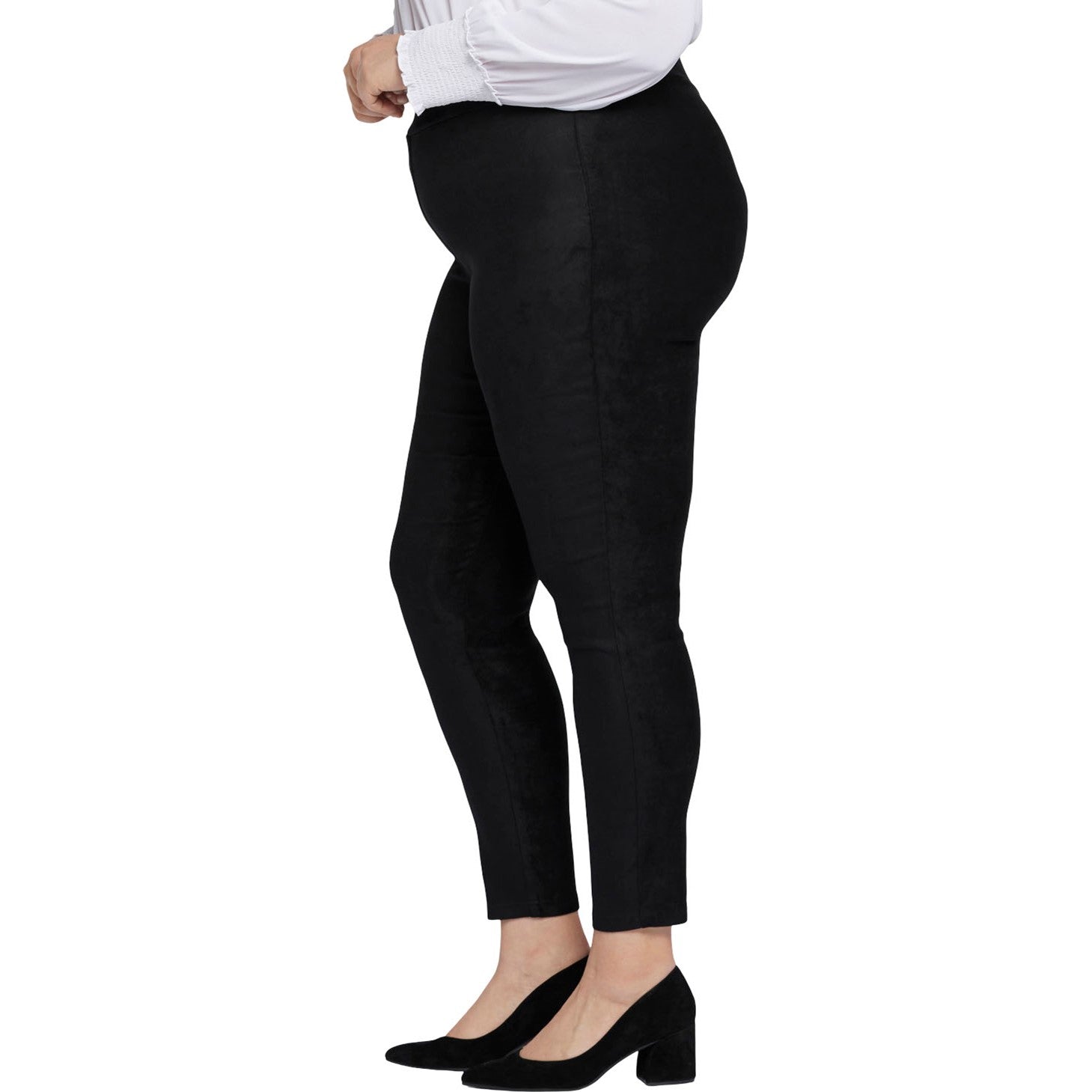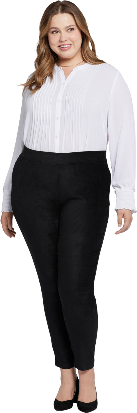 Get back to basics. The Basic Legging Pants in Plus Size in Stretch Faux Suede by NYDJ are the foundation you need for an endless number of fashionable ensembles, thanks to their sleek design, incredible comfort and super-slimming capabilities. Our revolutionary Lift Tuck Technology uses a front panel with a patented criss-cross design to give you a smoother-looking silhouette and lifted curves.