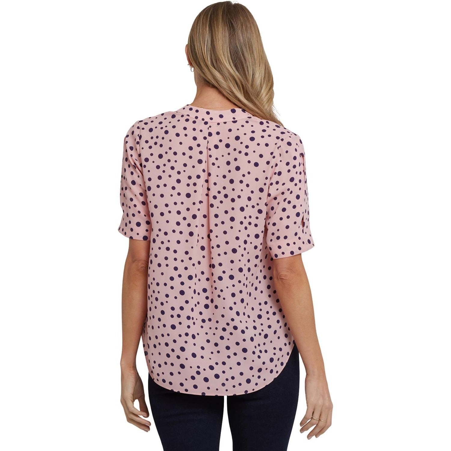 You're such a charmer. The Charming Top by NYDJ is the drapey, easy top your closet has been searching for. The oversized fit is the perfect complement to your favorite denim and easily transitions from work to cocktails with a pair of heels. Finished with a V-neckline, short sleeves with pleat detail and a subtle high-low hem. This top is made with a sustainable polyester fiber created from 100% post-consumer plastic waste, resulting in less water and energy use and fewer greenhouse gas emissions without changing the look and feel of the fabric.