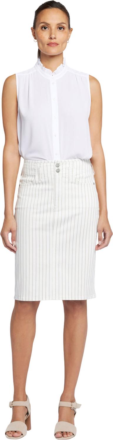 NYDJ's High Waist Skirt in Petite can take you everywhere you need to go. The waistband sits high on the nipped-in waist, instantly adding polish and definition to this knee-grazing style. Our signature Lift Tuck Technology provides just the right amount of support for a smooth, flawless figure—all thanks to an innovative, proprietary slimming panel with a patented criss-cross design. Finished with a zip fly with two button closures and four-pocket styling. This skirt is made with earth-friendly methods that result in reduced consumption of water, chemicals and/or energy.