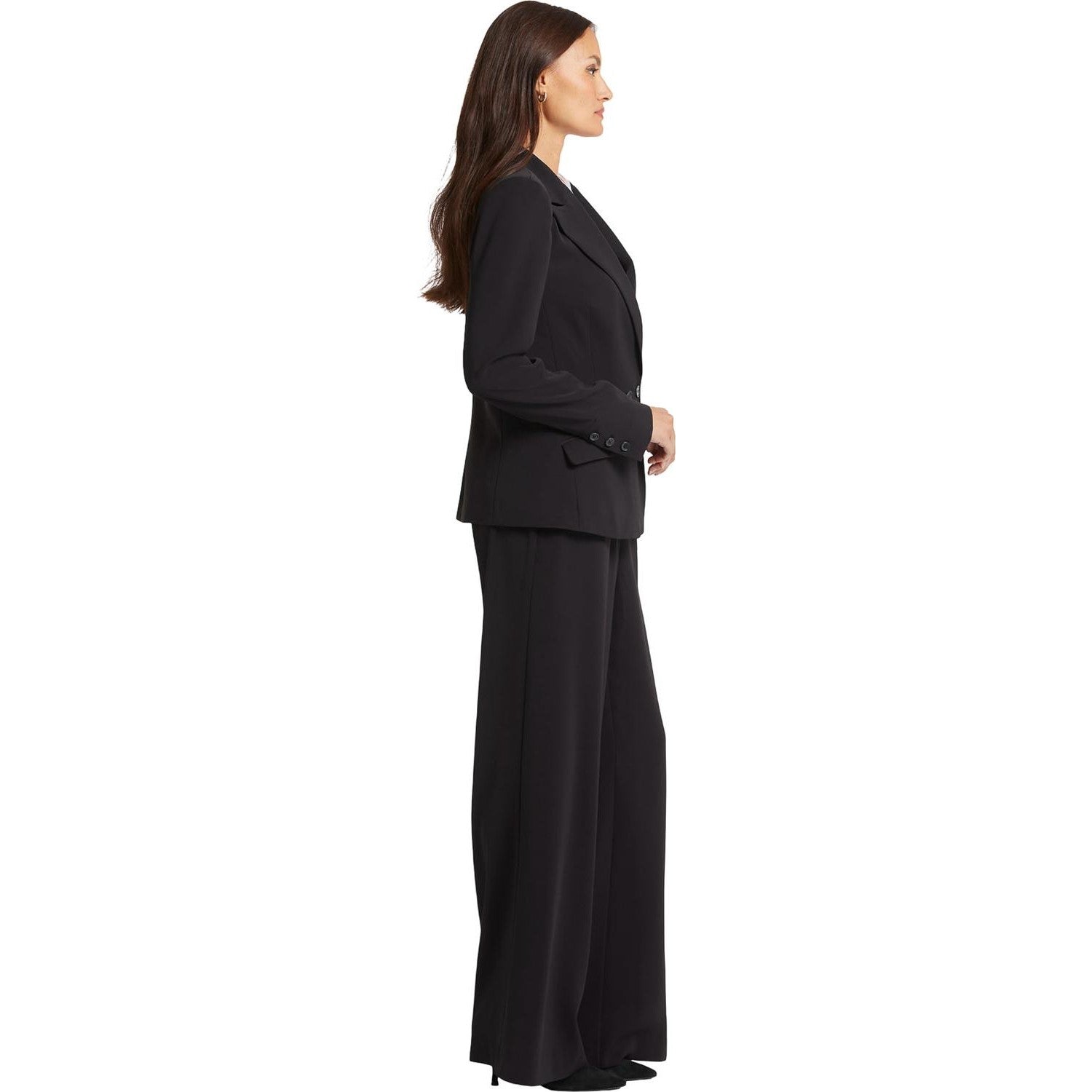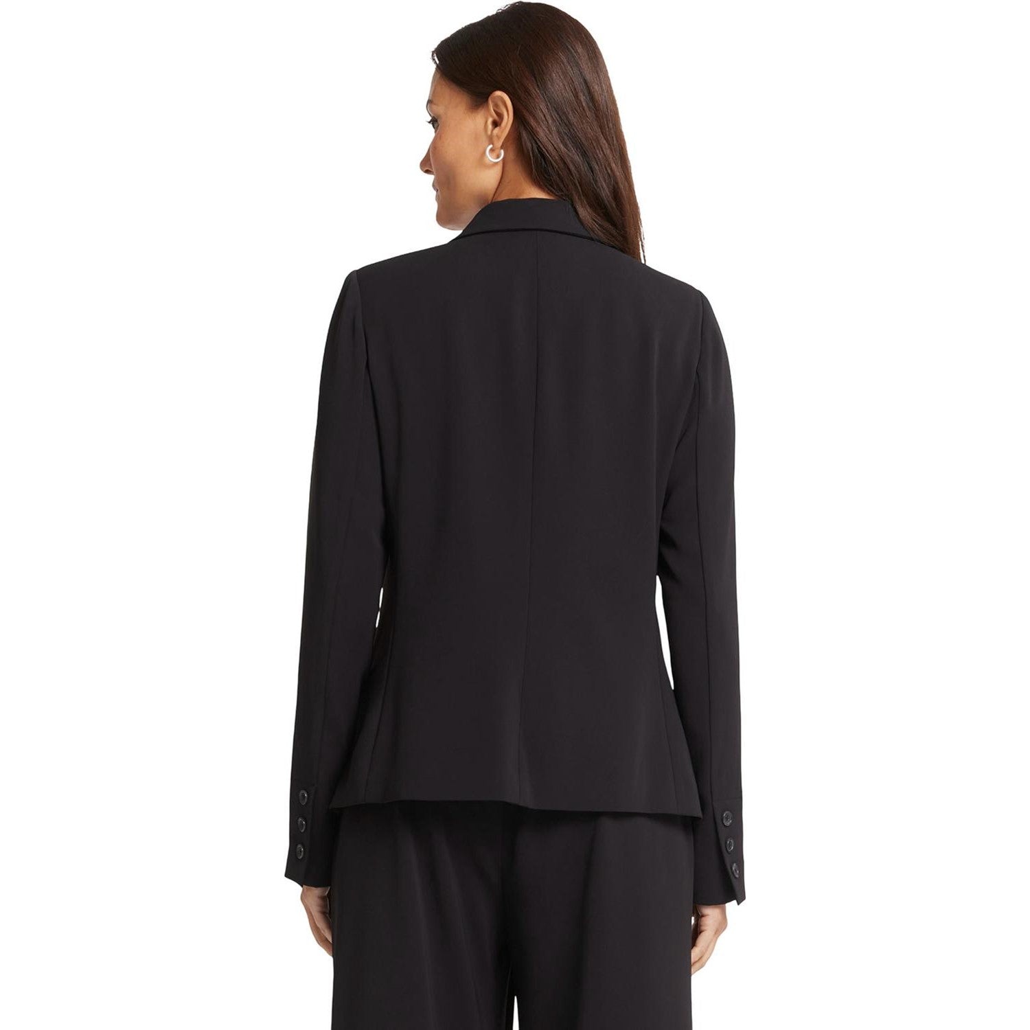 A chic blazer is the perfect polished complement to all our jeans and pants. Crafted from luxe crepe fabric, NYDJ's Modern Blazer Jacket has a current menswear-inspired look with its slightly boxy fit, wide lapels and double-breasted front button closure, but it's cut to fit feminine curves. Finished with front flap pockets.