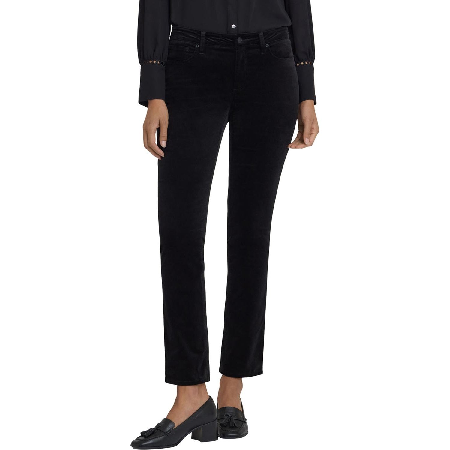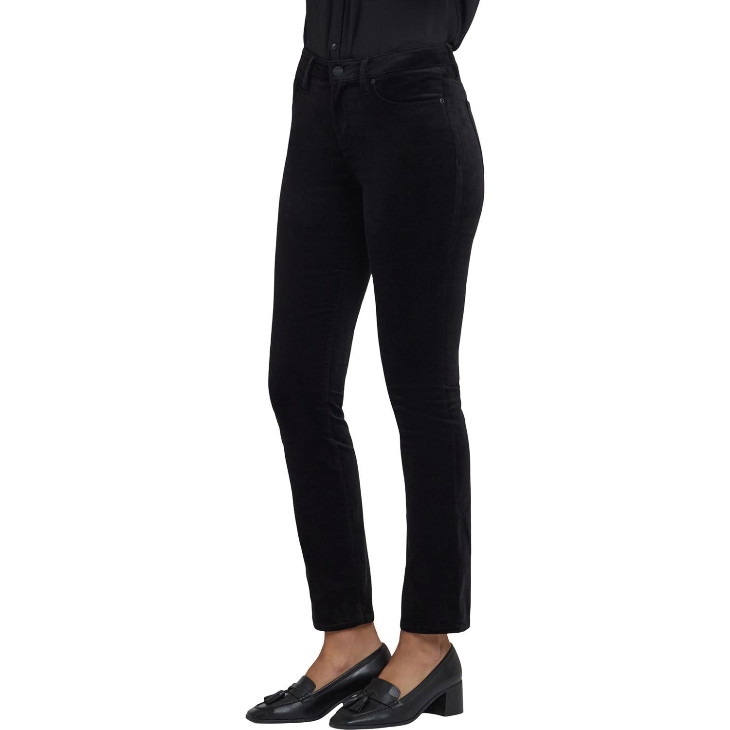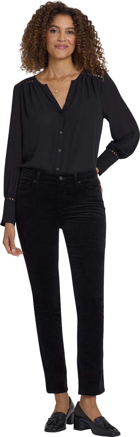 Between skinny and straight, you'll find the perfect body-hugging slim fit in NYDJ's Sheri Slim Pants. Lift Tuck Technology uses a proprietary slimming panel with a patented criss-cross design to shape and support your curves for an always-sleek silhouette. These pants are also made from our soft stretch velveteen, fabulous for mixing into your fall and holiday looks. Features classic five-pocket styling, zip fly and button closure.