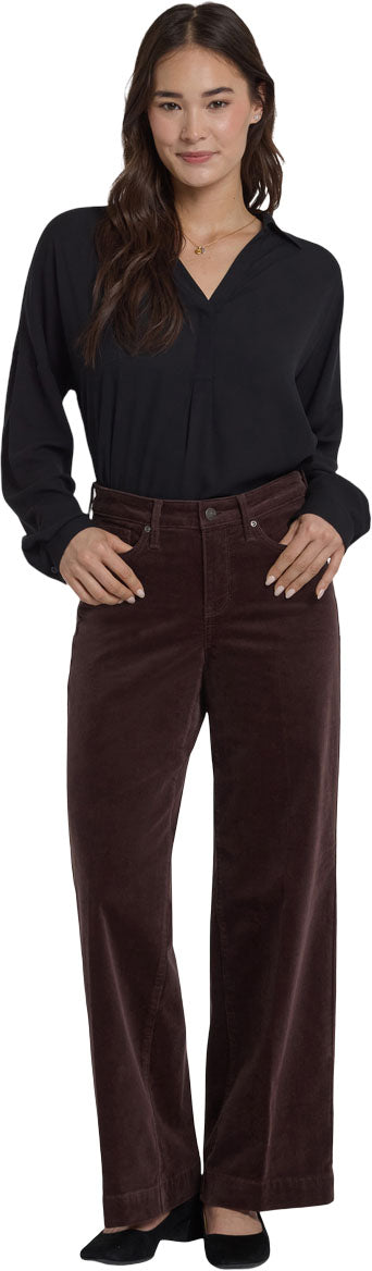 The Teresa Wide Leg Pants by NYDJ cinch your waist, enhancing your natural silhouette. Their wide legs add instant polish to everything you pair them with. These pants are also made from our fine wale stretch corduroy, which has a smaller texture and softer feel than typical corduroy. Our Lift Tuck Technology is made to help you keep your shape, with a proprietary slimming panel with a patented criss-cross design that smooths and sculpts. Features five-pocket styling, a zip fly with button closure, deep trouser-style hems and a shorter inseam than our typical Teresa Wide Leg. This pant is made with earth-friendly methods that result in reduced consumption of water, chemicals and/or energy.