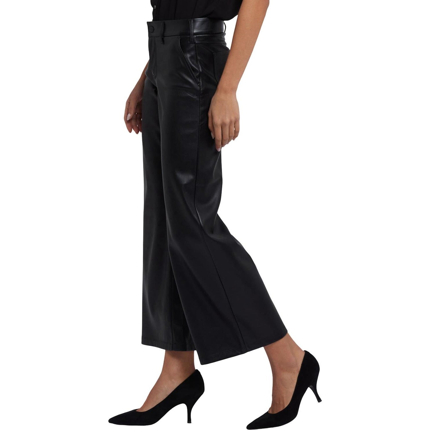 The Wide Leg Trouser Pants by NYDJ sculpt your curves and add sophistication to your style in premium lightweight compression vegan leather with comfortable stretch. Featuring a bold wide leg silhouette and a chic ankle length, they're finished with a zip fly, button closure, front slash pockets and back patch pockets. They're also made with our signature Lift Tuck Technology, which uses a proprietary slimming panel with a patented criss-cross design to shape and support. This pant is part of Sculpt-Her™, NYDJ's most novel collection of compression-contouring silhouettes with an unparalleled, cutting-edge fit.