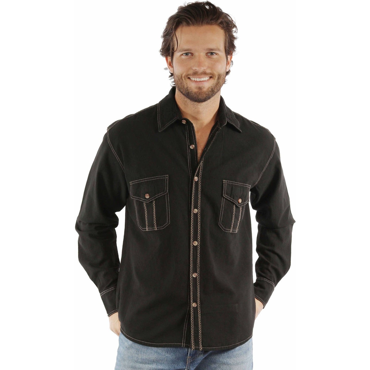 Long Sleeve Button Front Mens Shirt With Contrast Stitching Made In Soft Peruvian Cotton