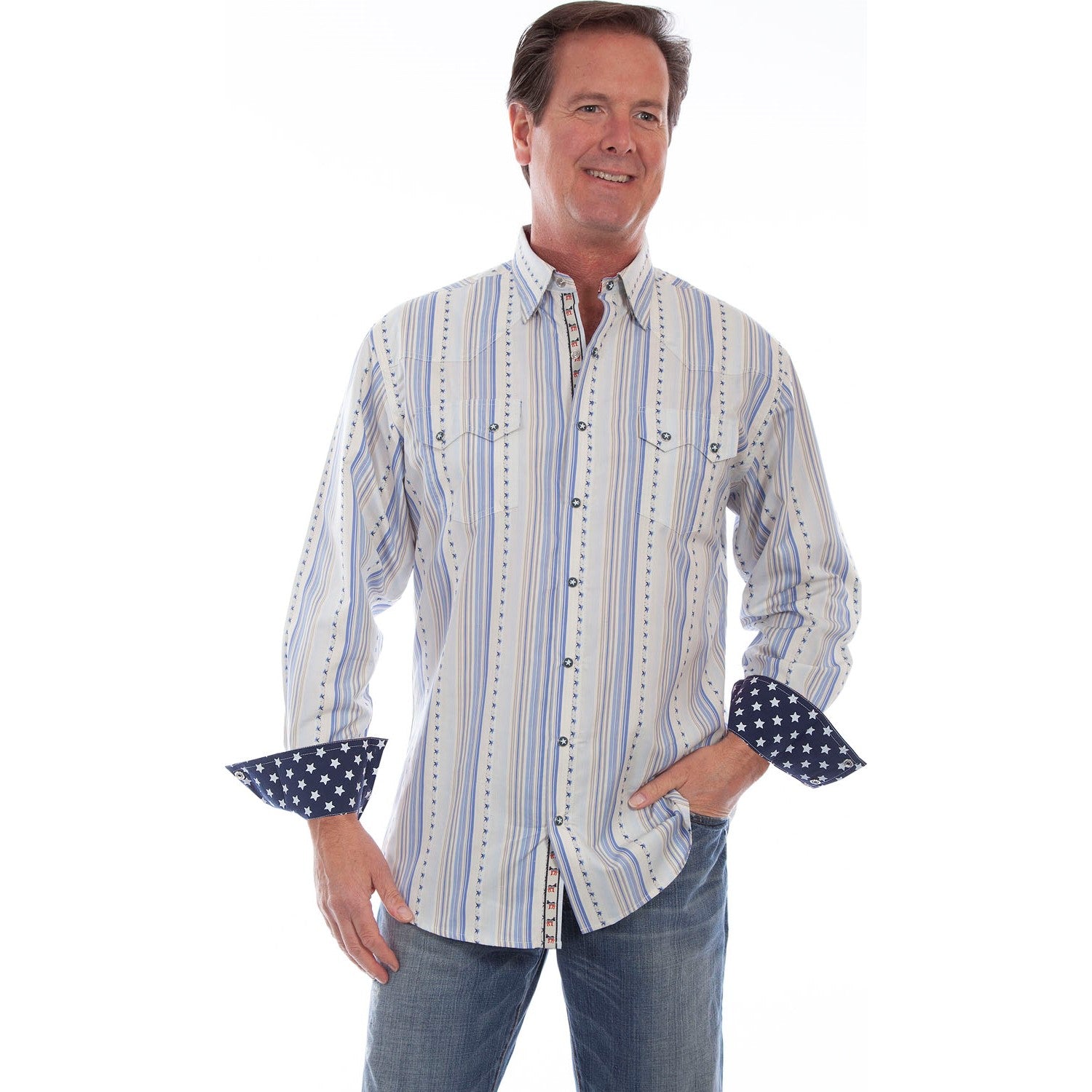 - 100% Cotton Shirt Features A Snap Front And Cuff Closures, Two Chest Flap Pockets With Snap Closures