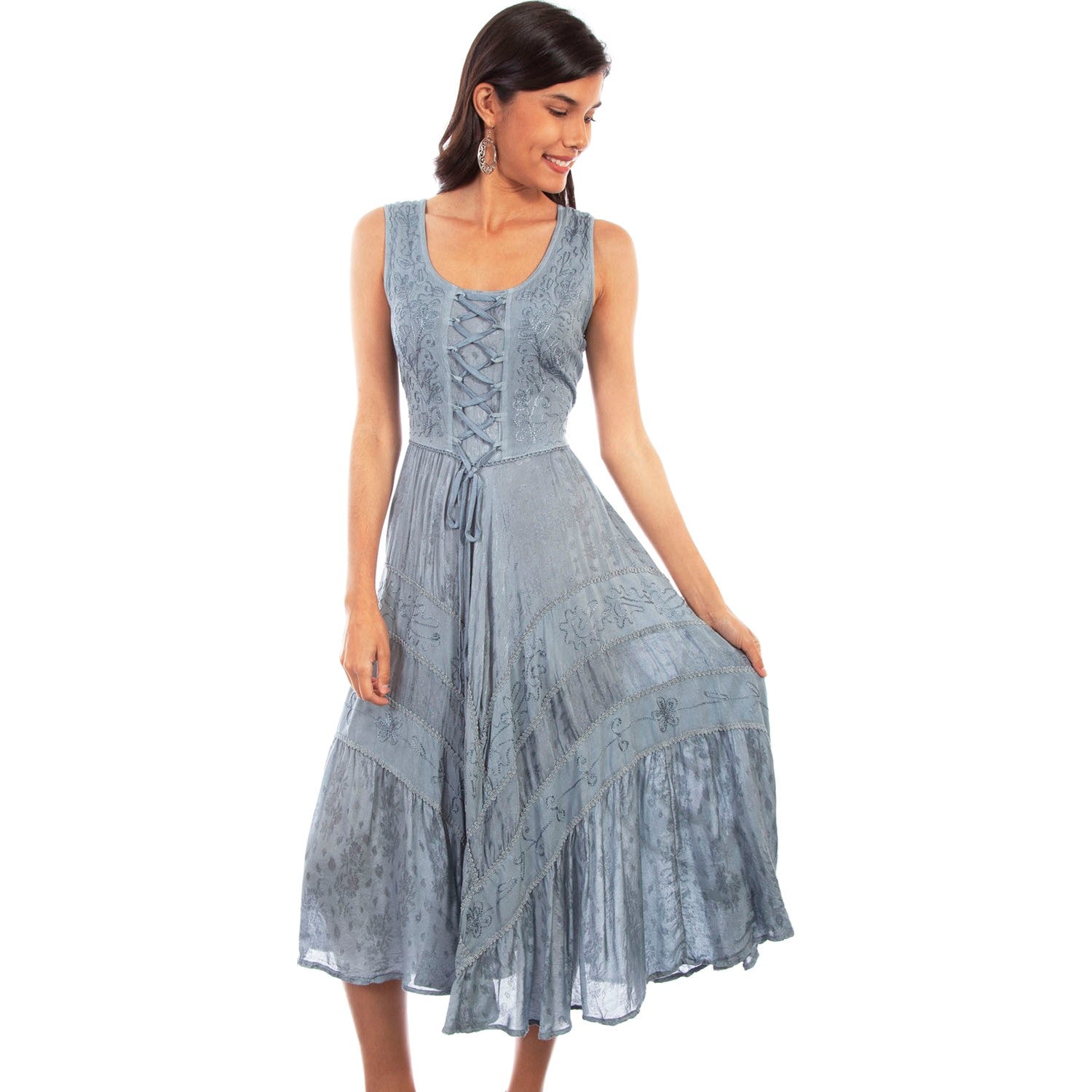 Full Length Lace-Up Front Sleeveless Dress