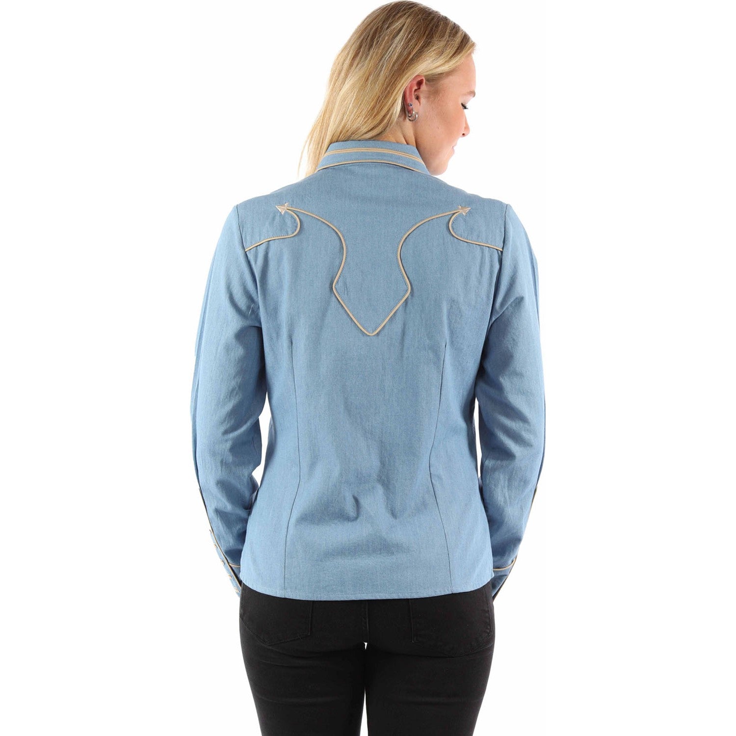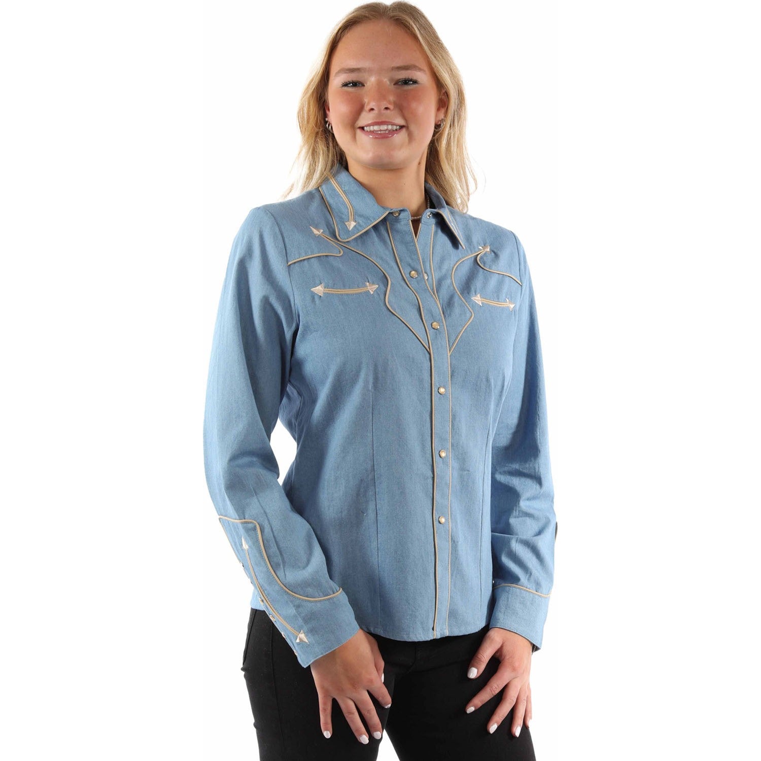 Scully - Womens Solid Blouse W/Piping & Arrow Tips