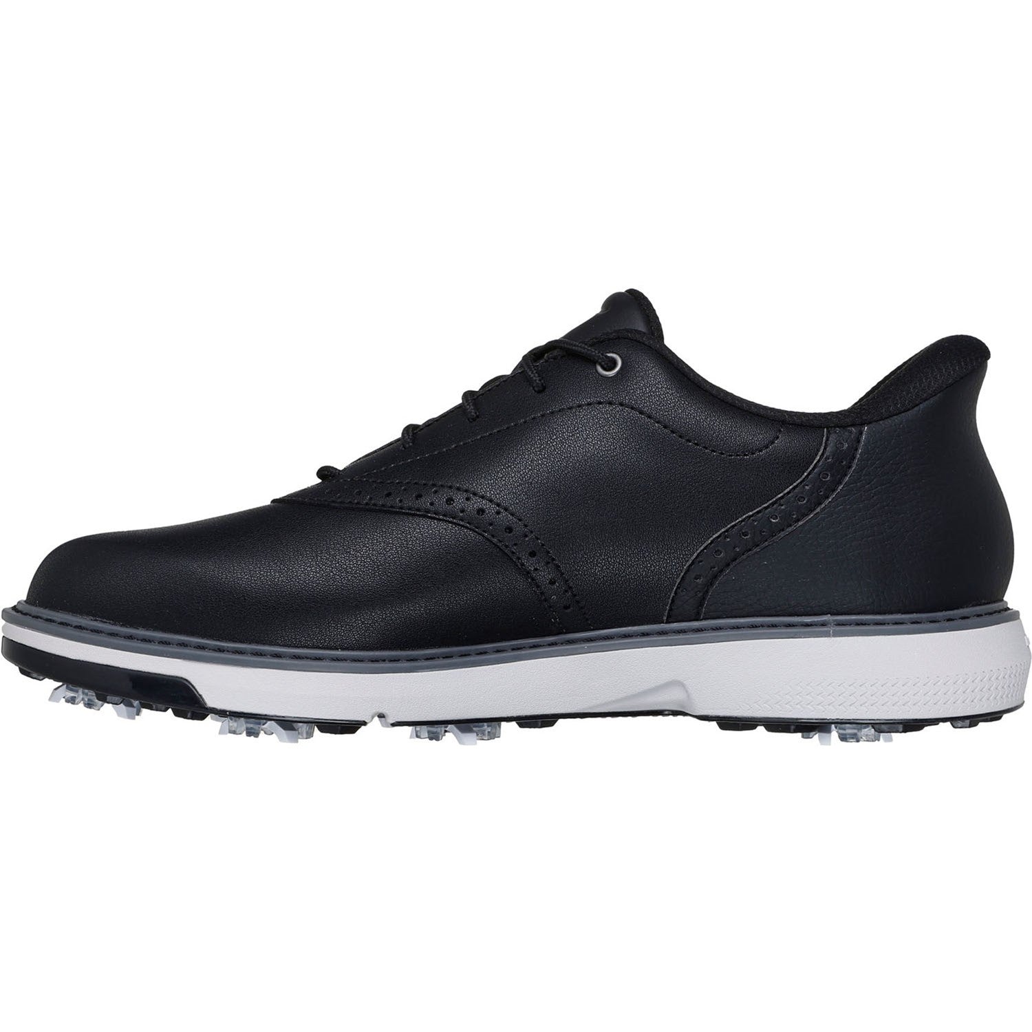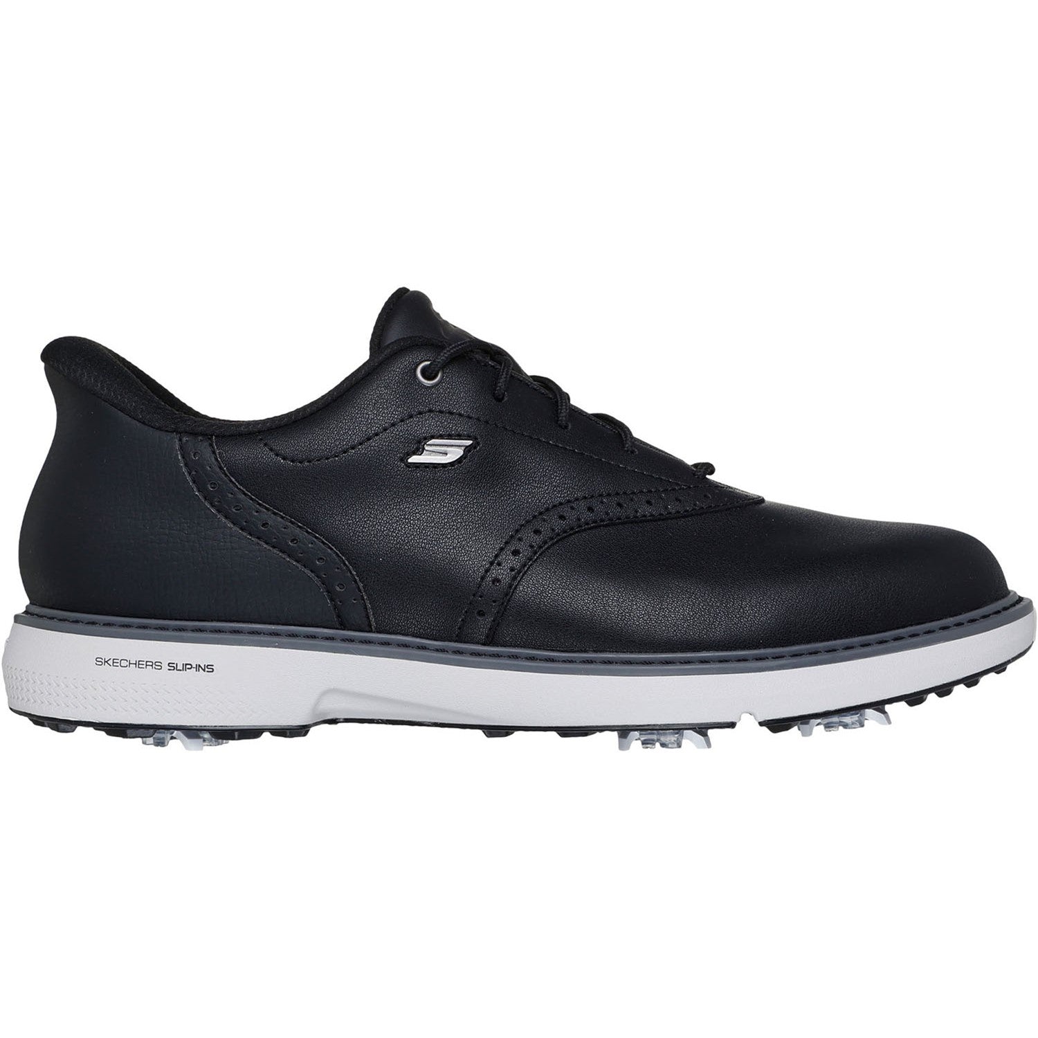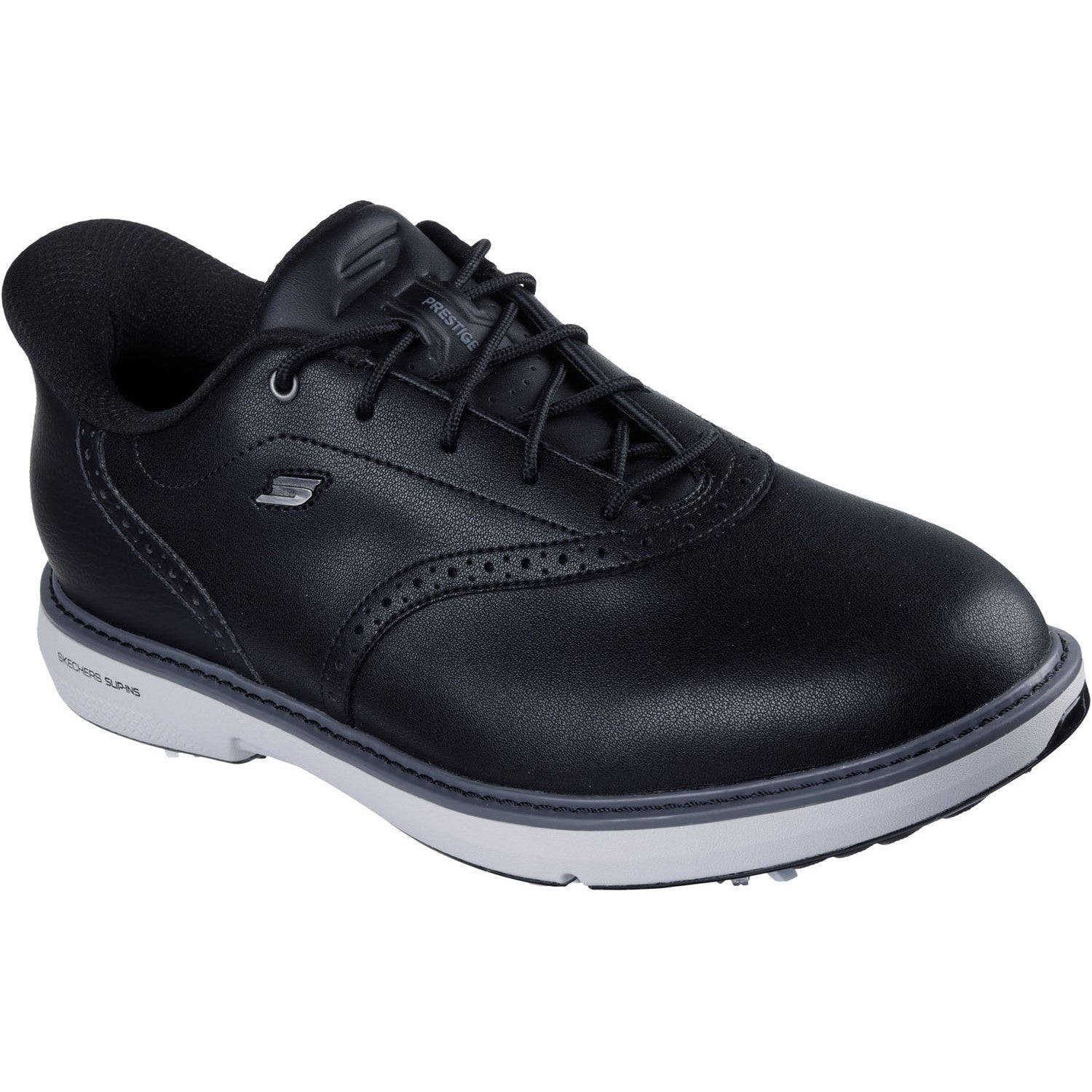 Handle the course in timeless style and modern comfort wearing Skechers Hands Free Slip-ins: GO GOLF Prestige. Designed with our exclusive Heel Pillowâ„¢, this waterproof golf design features a lace-up leather upper with saddle oxford details, a removable Arch Fit insole, lightweight ECO FLIGHTâ„¢ cushioning, and replaceable Tour Flex Pro SoftSpikes. Learn More About Hands Free Slip-ins Technology