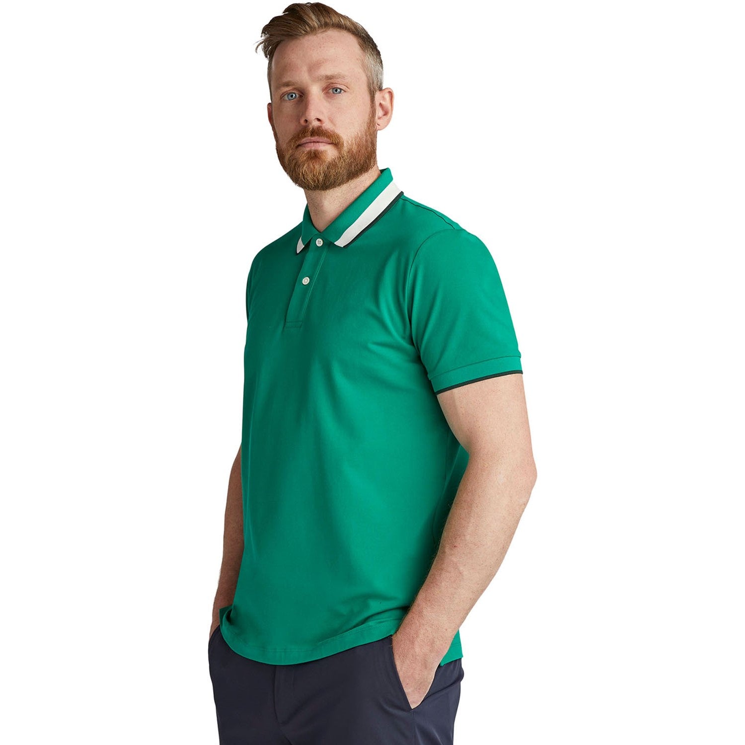 High twist yarns and long Supima cotton fibers give this polo an irresistibly smooth feel that’s cool to the touch, with added spandex for adaptable fit and comfort.