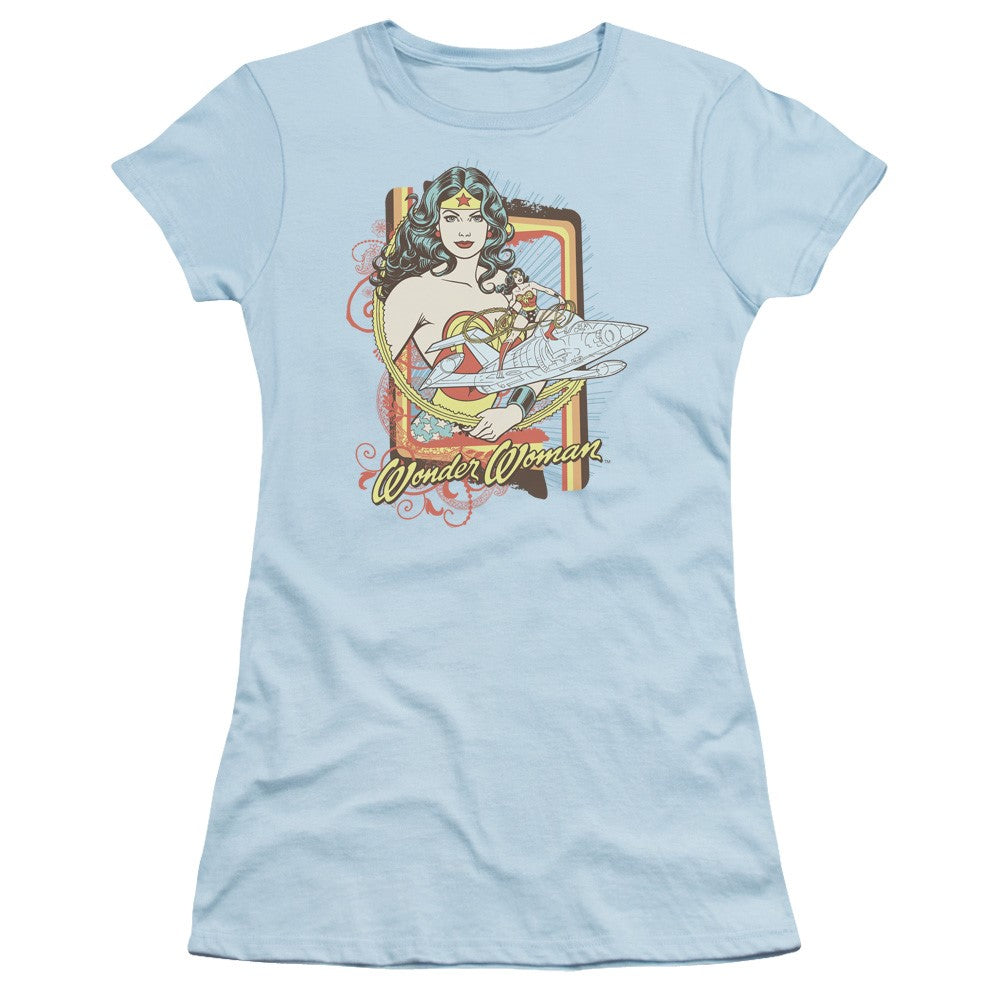 Wonder Woman Invisible Jet Juniors S/S T-shirt in Light Blue by DC Comics